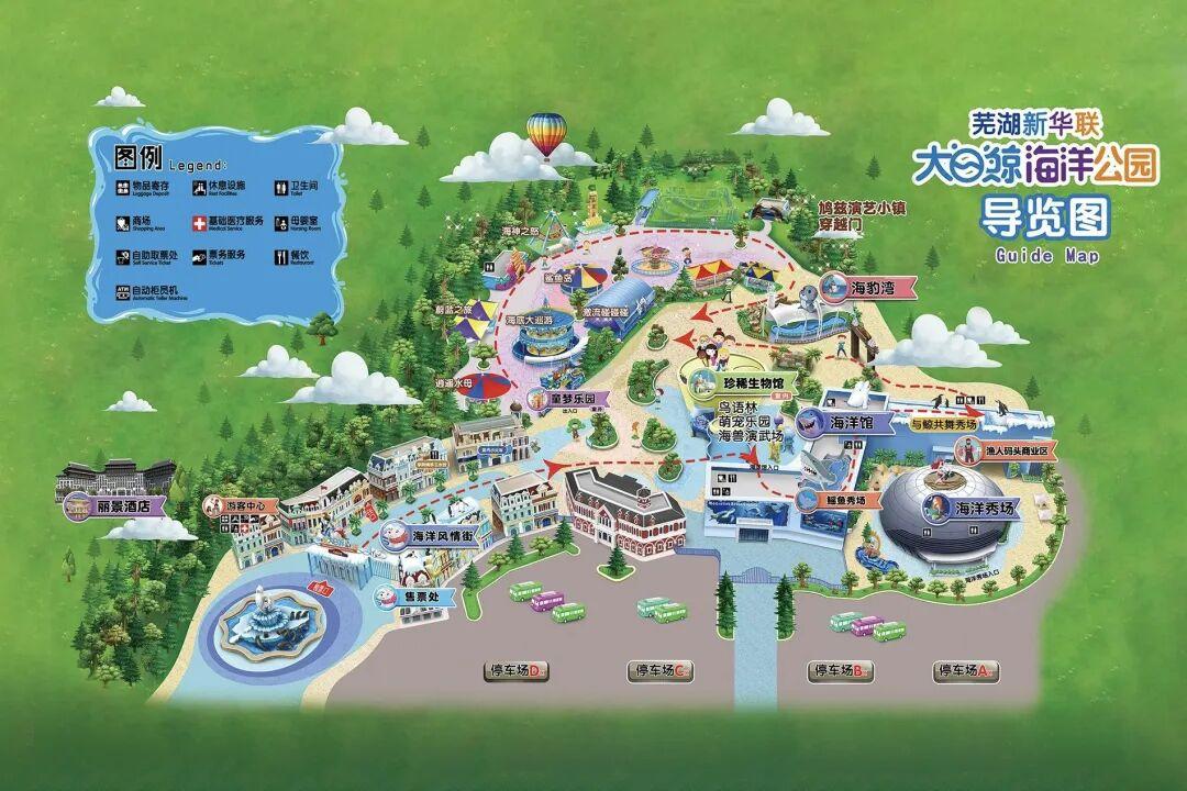 海洋公園的明星是白鯨,這裏還專門設有白鯨部落、奇幻大堡礁等十二大主題展區,有海獅、海豹、海豚、水獺、企鵝、北極狐、水母等等海洋生物,可以沉浸式體驗海洋世界。