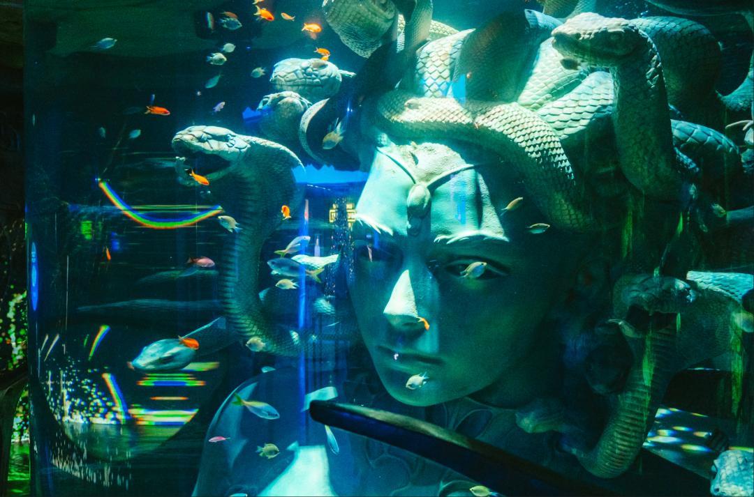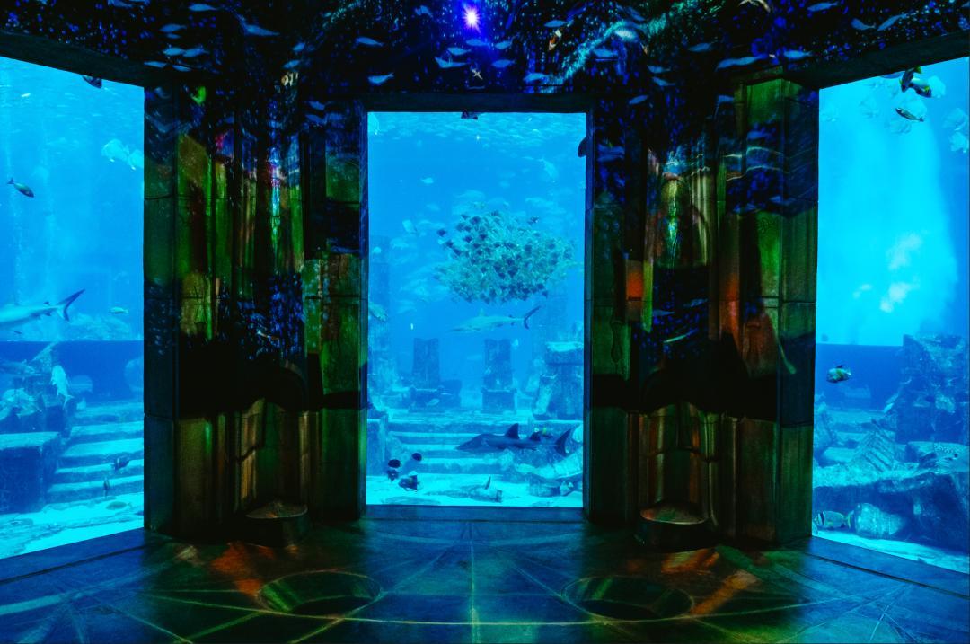 隨後我們來到了亞特蘭蒂斯水族館,這裏是中東規模最大的露天水族館之一。其設計靈感源自亞特蘭蒂斯古希臘神話,傳說中沉入大西洋的古老文明。