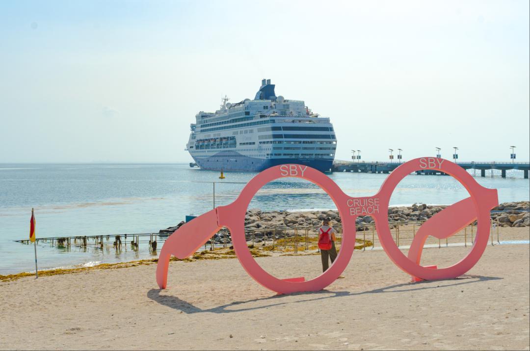 酒店的海濱還能眺望到我們這次要去乘坐的星瀚旅程號,算是提前和這艘船照了個面。