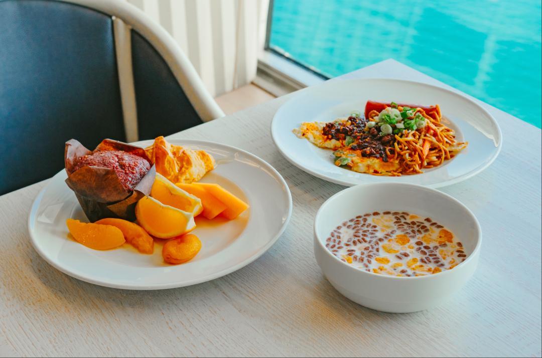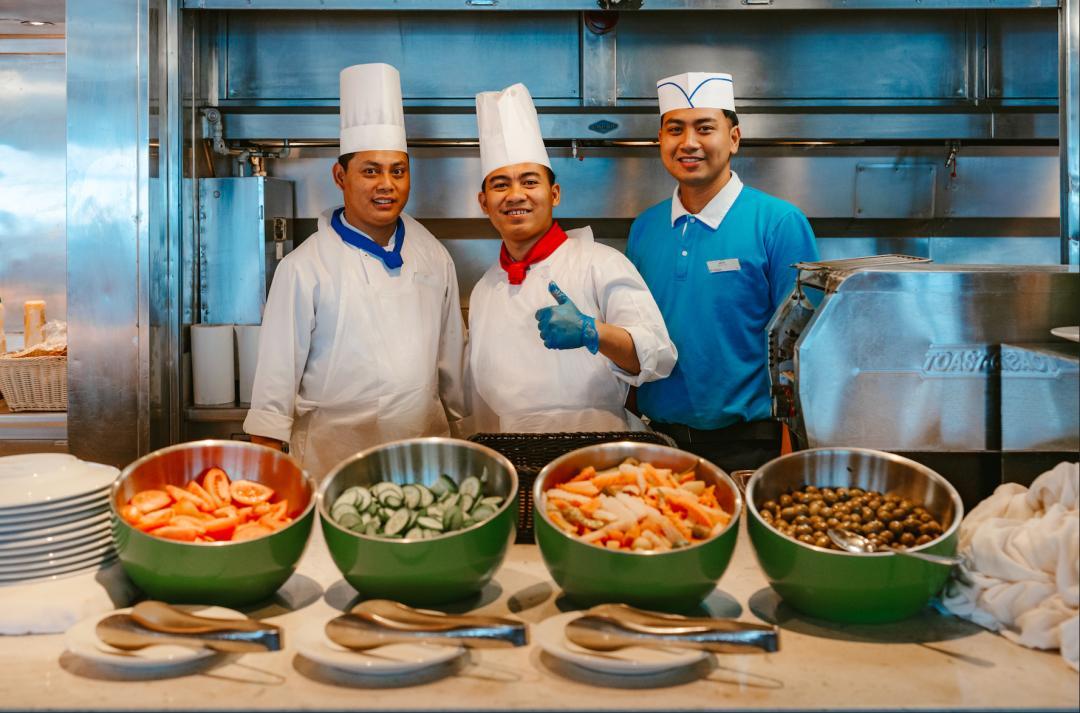 早餐時段會提供現做煎蛋,午餐/晚餐除了地中海烤肉、海鮮燴飯等本地風味,還會根據中國遊客數量 “開小竈”,有炒麪,甚至備有老乾媽。