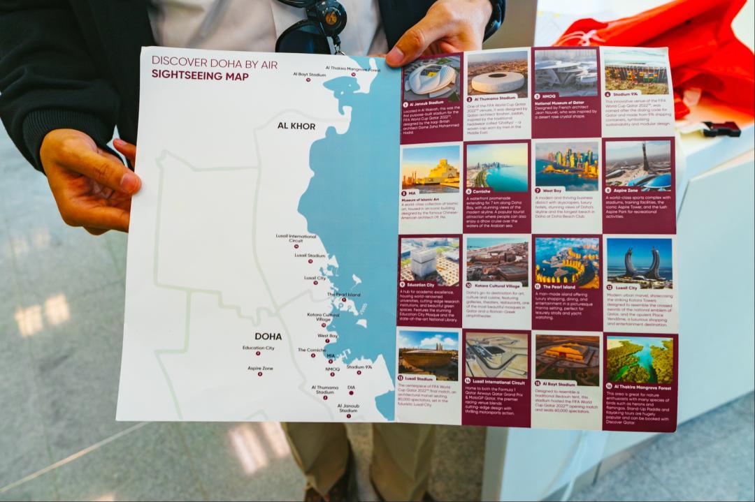 這次多哈空中游覽大概會持續45分鐘,航線巧妙串聯了 “體育地標、文化樞紐、自然生態、現代商圈” 四大板塊。