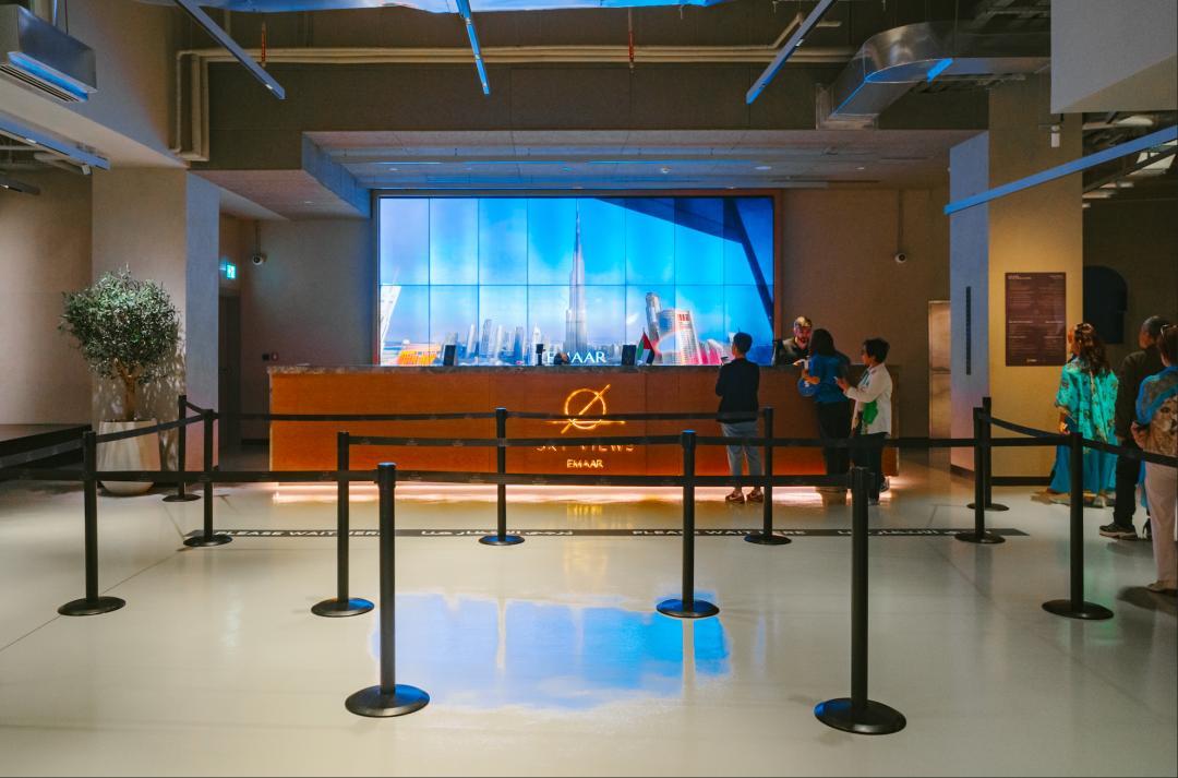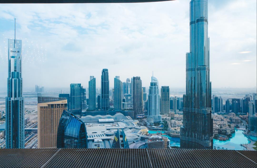 景觀臺採用了全玻璃幕牆設計,可以無遮擋對望迪拜塔和迪拜噴泉。在這裏有一種置身於《銀翼殺手 2049》的感覺。