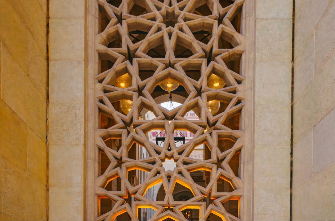 窗上的幾何紋樣通過無限 重複象徵着真主的永恆與宇宙的和諧。
