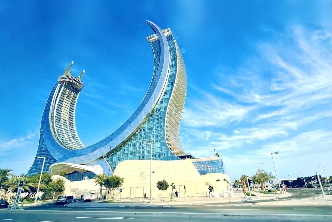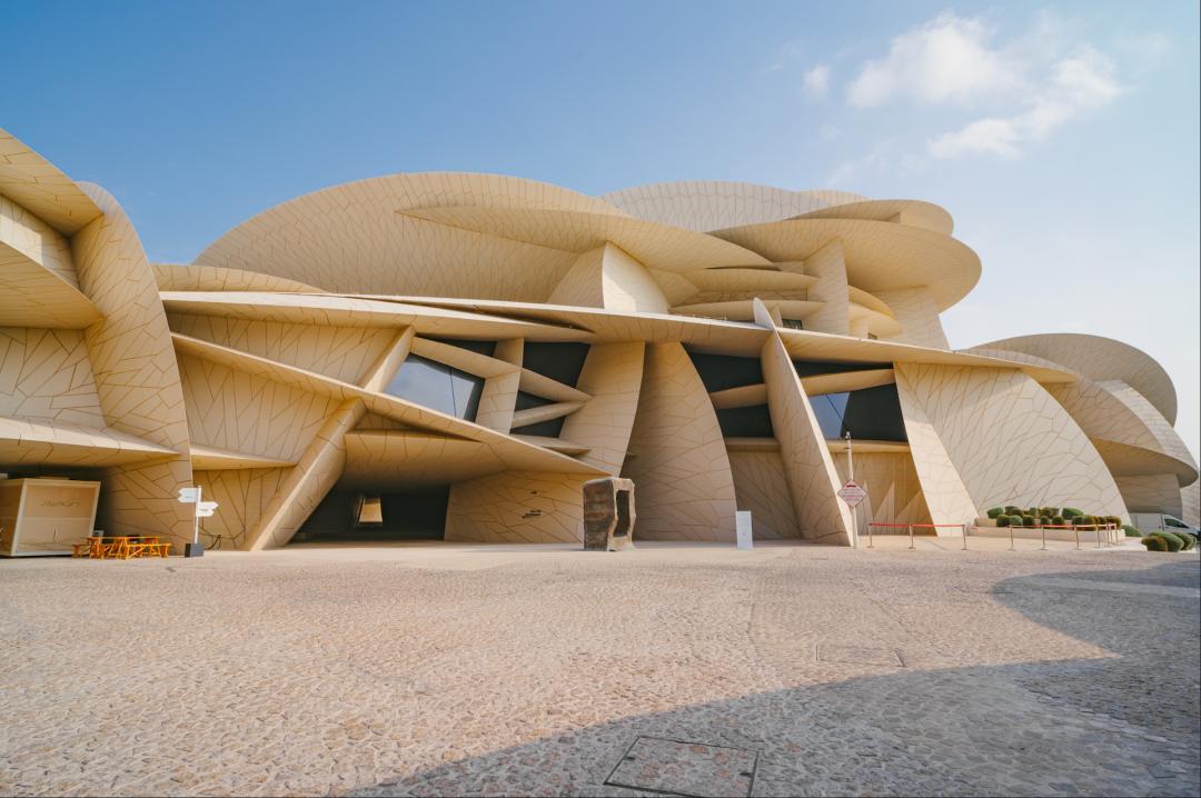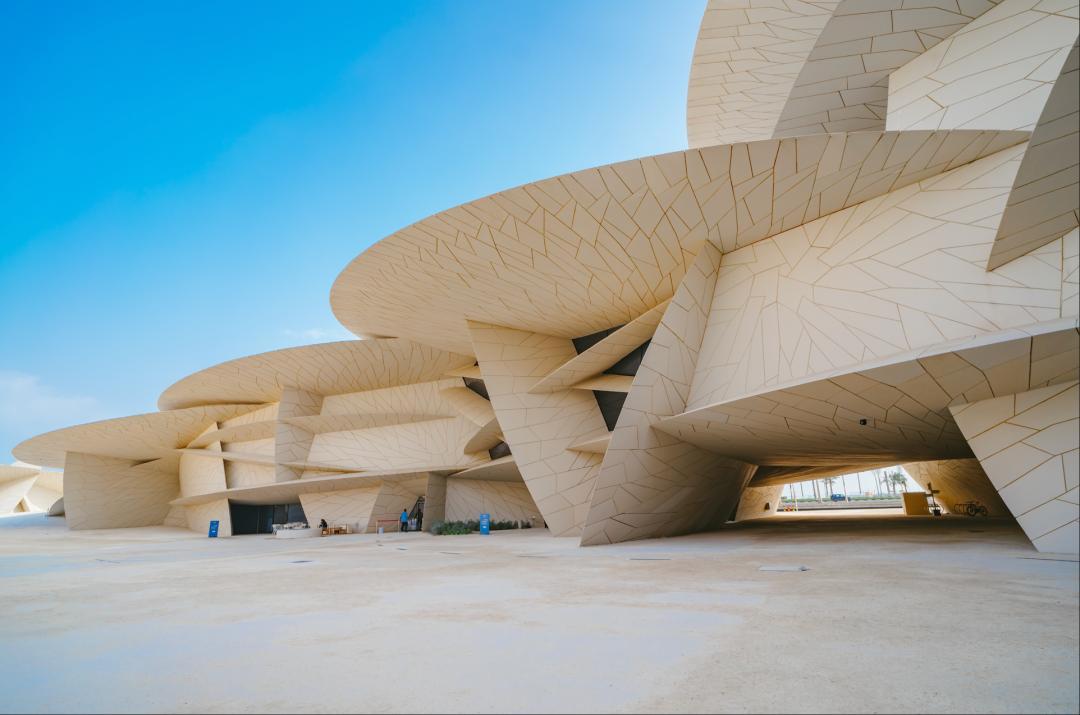 這棟建築是由明星建築師讓・努維爾設計,以 “沙漠玫瑰” 爲靈感,外觀如同晶體綻放,是多哈地標性建築。