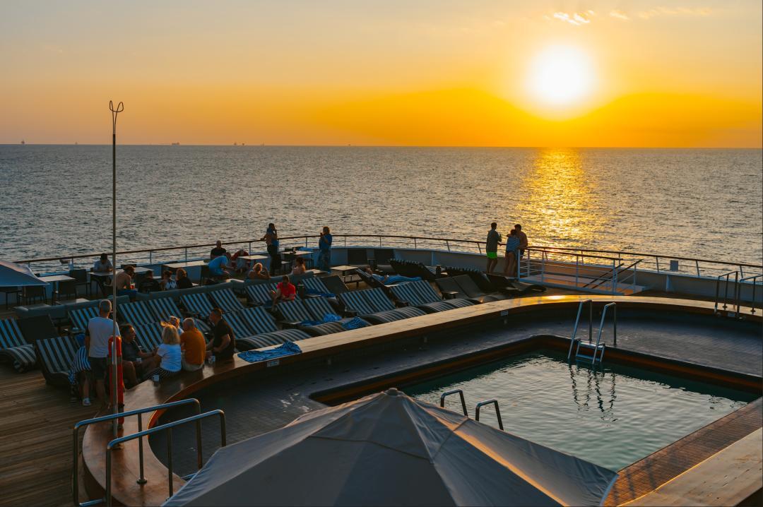 就好好享受郵輪咯,看了個海上日落。星瀚郵輪的介紹我會放在文章的後半段。