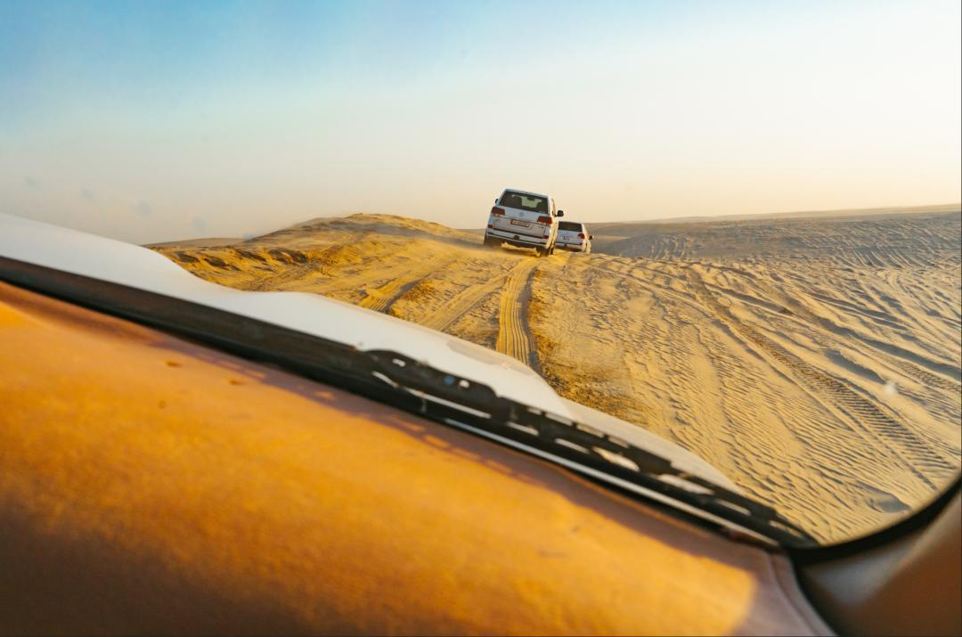 沙漠距離市中心有四十五分鐘的車程,我認爲這絕對是多哈最有意思的遊玩項目。和別的地方不同,在這裏衝沙風景獨好,因爲這裏有一片令人驚歎的內陸海。