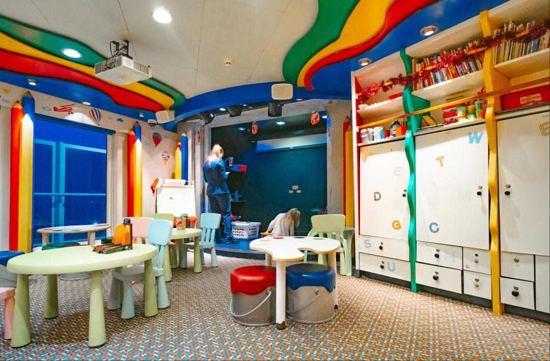 這船親子也挺友好的,12層甲板設兒童遊樂室、電子遊戲廳及網球/籃球場,滿足全年齡段休閒需求。