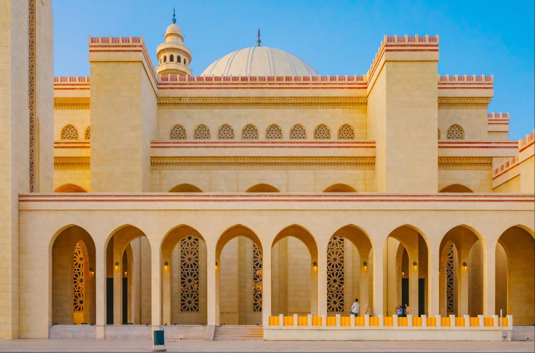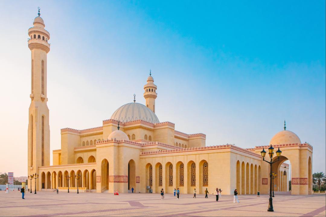 這座寺廟是巴林規模最大的清真寺,也是巴林王國伊斯蘭教中心的官方所在地。它佔地約6,500平方米,可同時容納7,000多名禮拜者。