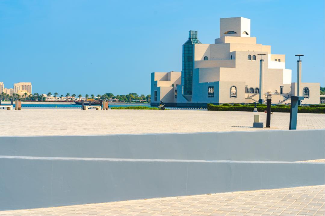 海邊還有一棟很像紀念碑谷裏的建築,這是由貝聿銘設計的伊斯蘭藝術博物館。建築採用純白石灰石,在陽光斜射的時候會更有層次感,宛如一座“光之島嶼”。