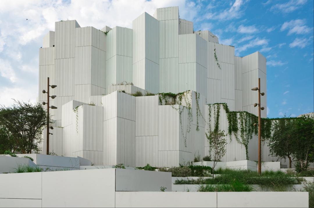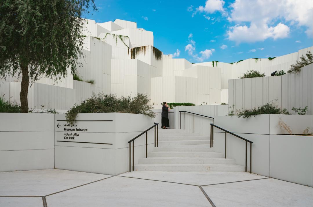 建築外觀以獵鷹翅膀爲靈感,五個傾斜的翅膀結構既具現代感,又呼應貝都因人馴鷹的傳統。