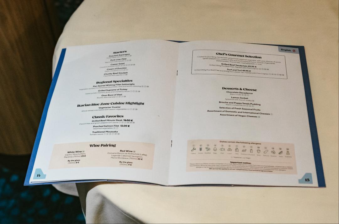船上的餐飲適配性很強,郵輪免費餐廳食材都很符合清真標準(在波斯灣運營必須清真),同時提供中式菜品(炒麪、老乾媽調料)、希臘風味,兼顧中東飲食規範和中國客人的口味。