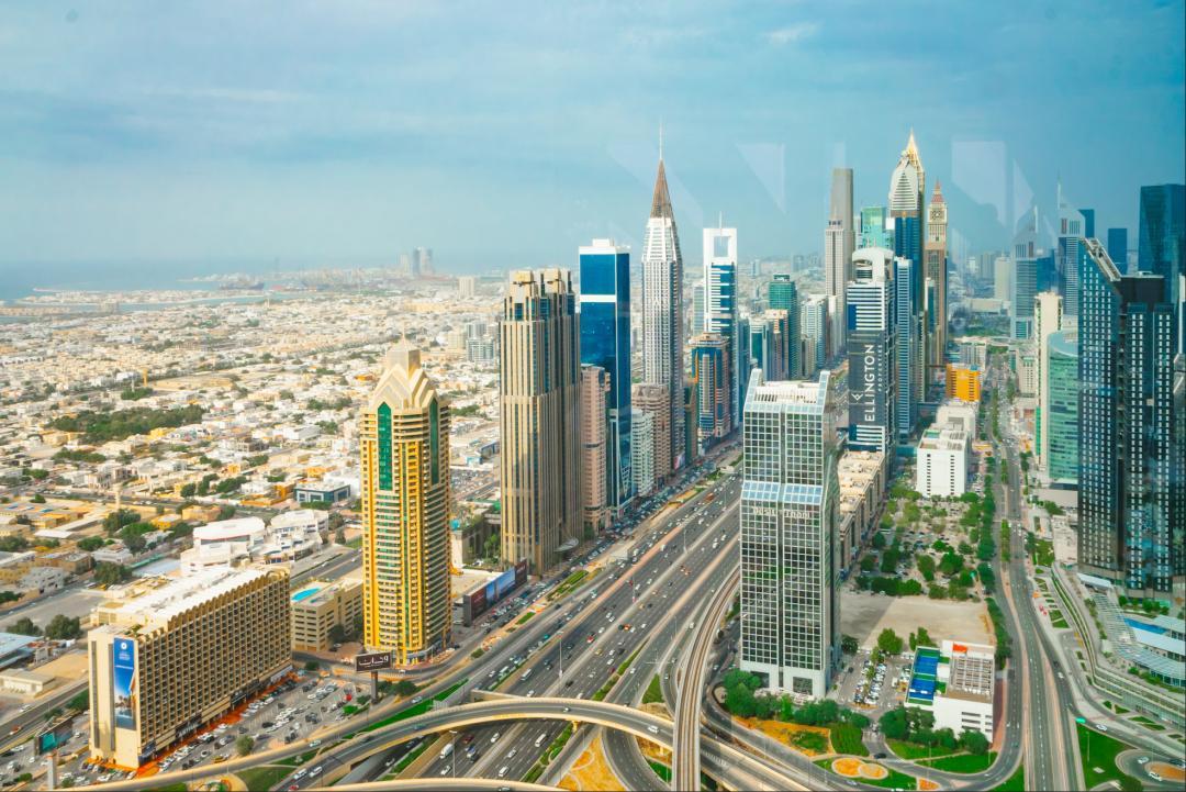 而另一側可以看到迪拜最爲繁忙的國王大道,你們可以數數一共有多少個車道。