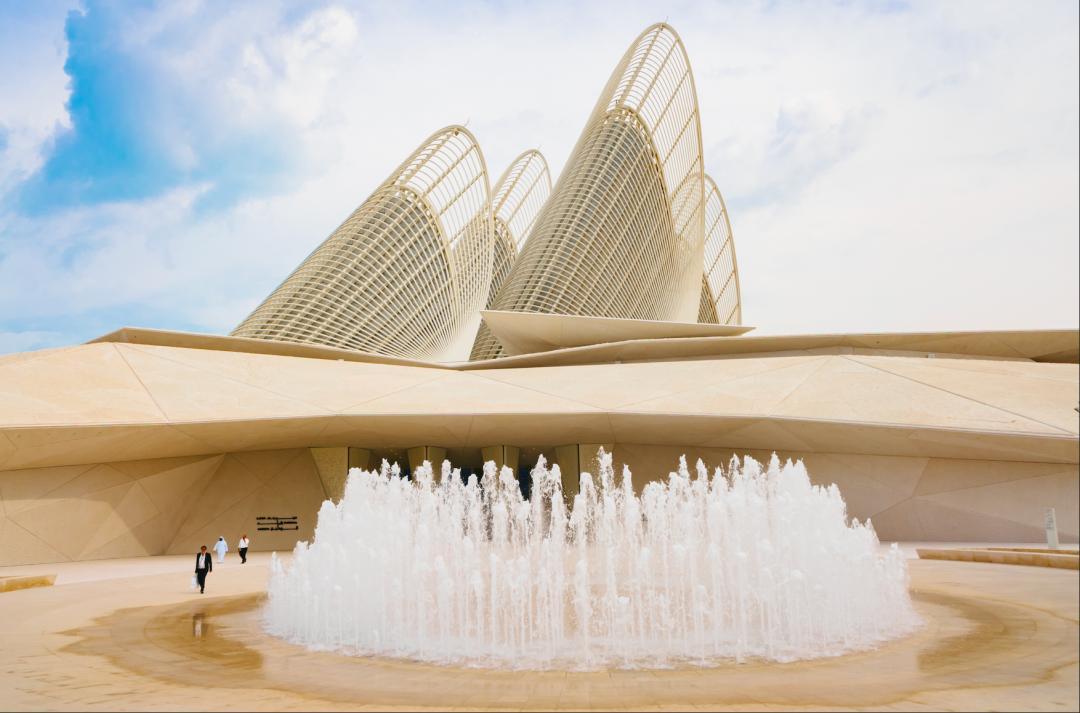 大采購之後我們就來到了巴林國家博物館,這是巴林規模最大、最權威的博物館,建築外觀模擬 “沙丘” 形態,非常契合沙漠國家地貌。