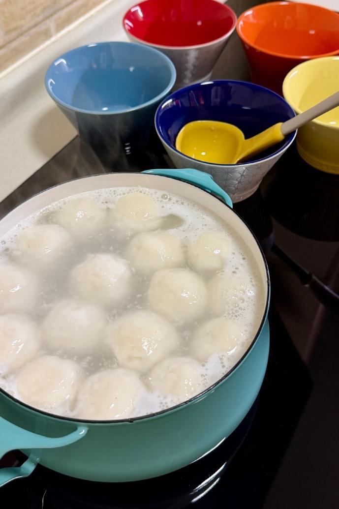 而元宵的煮制就有講究了,必須熱水下鍋,否則會出大問題。因爲元宵是滾制而成的,表皮是乾燥的糯米粉,若用冷水或溫水下鍋,表皮會迅速吸水變軟、脫落,煮出來就成了“糯米糊”。所以煮元宵必須是滾水,而且煮制時間較長,通常需要10分鐘以上,直到元宵膨脹、漂浮,用筷子按壓能迅速回彈,才說明完全熟透。