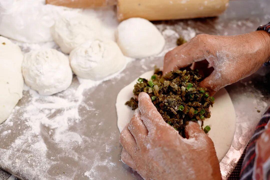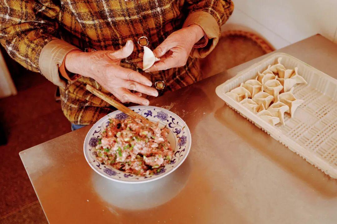 肉餡做了簡單的調味,加了芹菜末,樸素的香氣,混着肉汁,鮮而不膩,一個接一個。