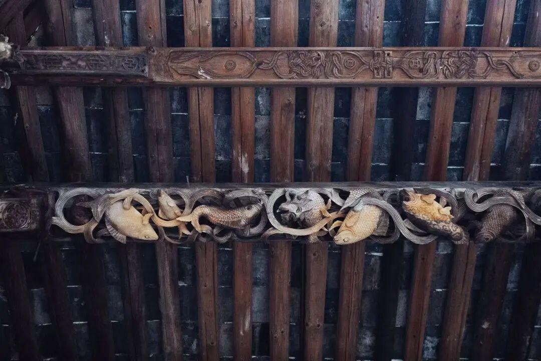 其中最稱奇的就是沿口桁條上的木雕鯉魚,會隨着天氣或季節的變化,變換黑、黃、紅三種顏色。