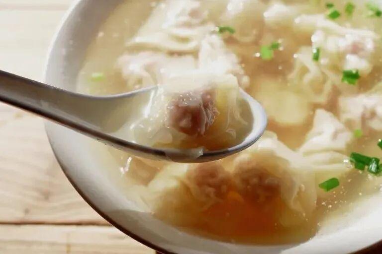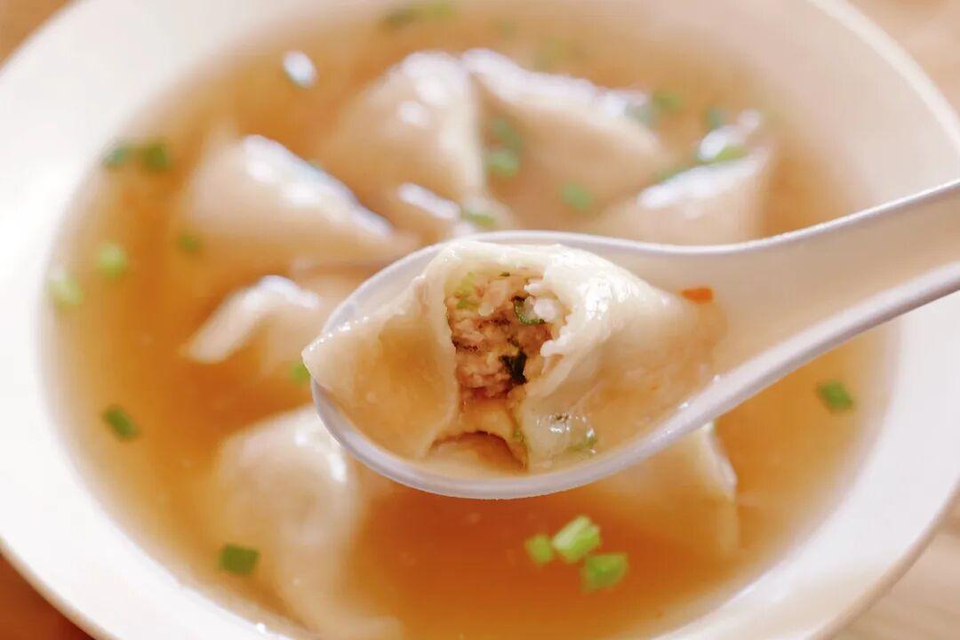 再舀起一個餛飩,皮薄得幾乎感覺不到,肉餡鮮嫩,一抿就化。