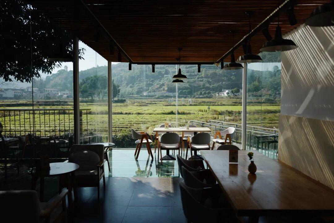 一進入村子,就被參天古樹包圍了。村口有一間漂亮的咖啡店,把陽光和稻田美景收納進屋子裏。