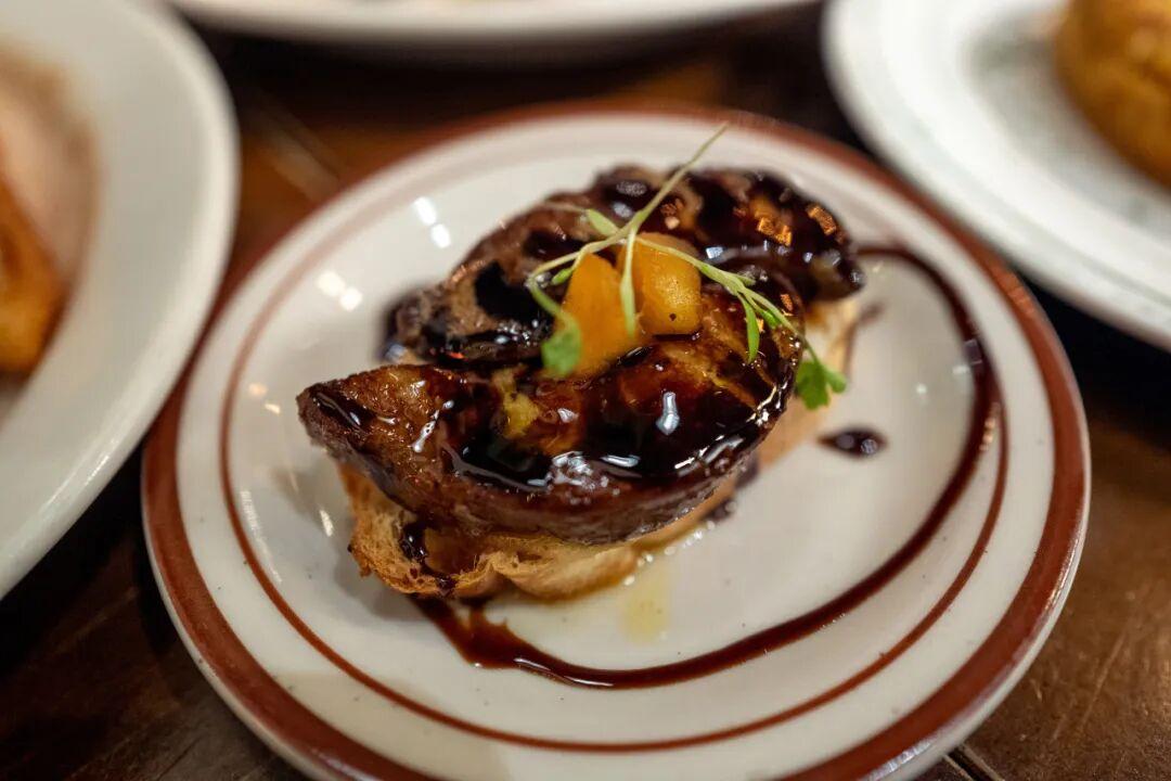 店裏的招牌是tapas,點了兩款,鯷魚蘋果蟹柳和香煎鵝肝,搭配一起喫清爽解膩。