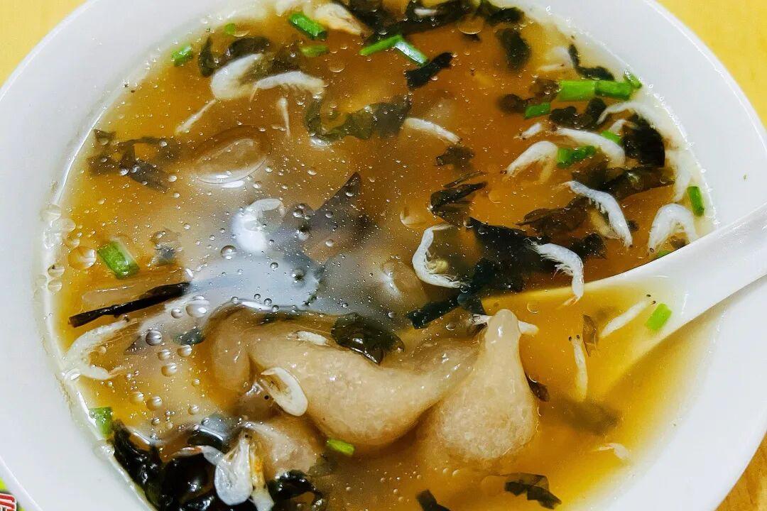 煮好的芋餃盛在碗裏,加一點紫菜、蔥花、蝦皮,喝一口湯,鮮得掉眉毛。咬一口芋餃,外皮滑溜溜的,帶着芋艿的清香,肉餡的汁水一下子爆出來。
