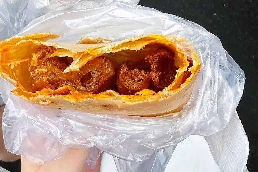 靈魂是自家熬的甜麪醬,鹹甜適中,香氣很足,標配一定要加一根現炸脆油條,脆香和軟韌撞在一起,一口下去超滿足。