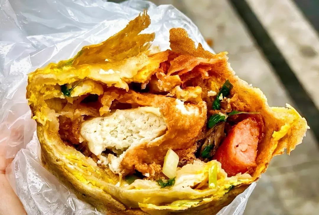 我每次去都標配“雞蛋+裏脊肉+雪菜”,咬一口,外皮咔嚓脆,內餡軟乎乎的,醬香味十足,一個就能喫到撐,才10塊錢出頭。