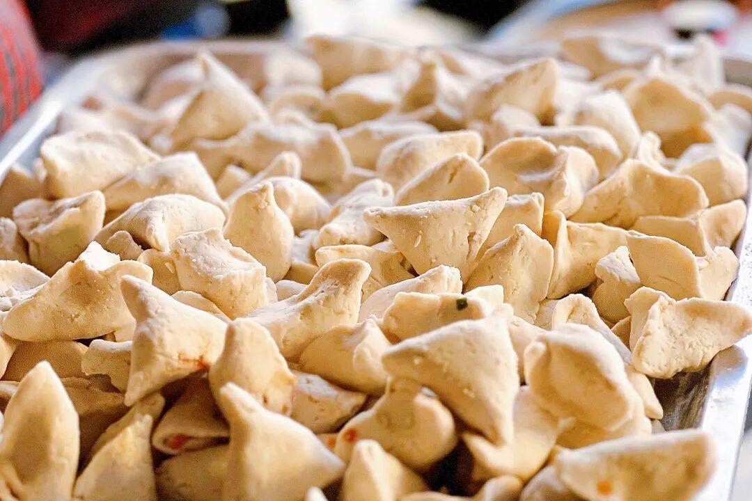 這種風格的芋餃,軟韌又滑糯,煮多久都不會爛。包出來的芋餃,餡料紮實,一個個三角形,胖乎乎的,看着就可愛。