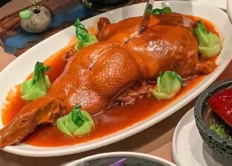 因爲它不僅是一道菜,更是一門手藝!廚師要把整隻鴨子去骨(皮不能破),肚子裏填滿“八寶”餡料,然後上籠蒸得酥爛,最後澆上濃稠的滷汁。