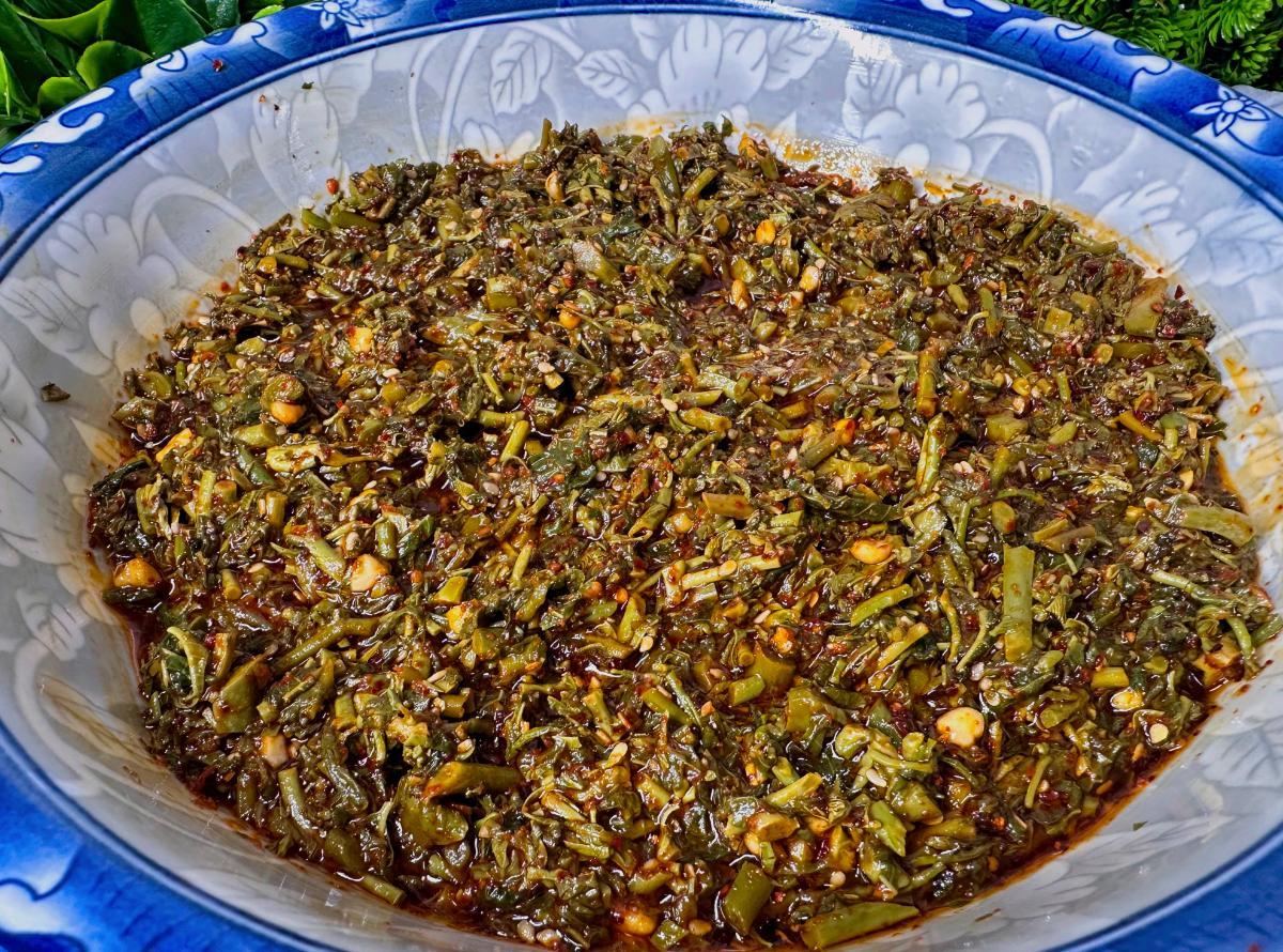 做香椿醬大家要記住,不要捨不得用油,最好是油要多一些,肉眼能看見香椿表面滲出紅油,因爲油太少的話,香椿喫起來不香,而且口感比較乾巴。
