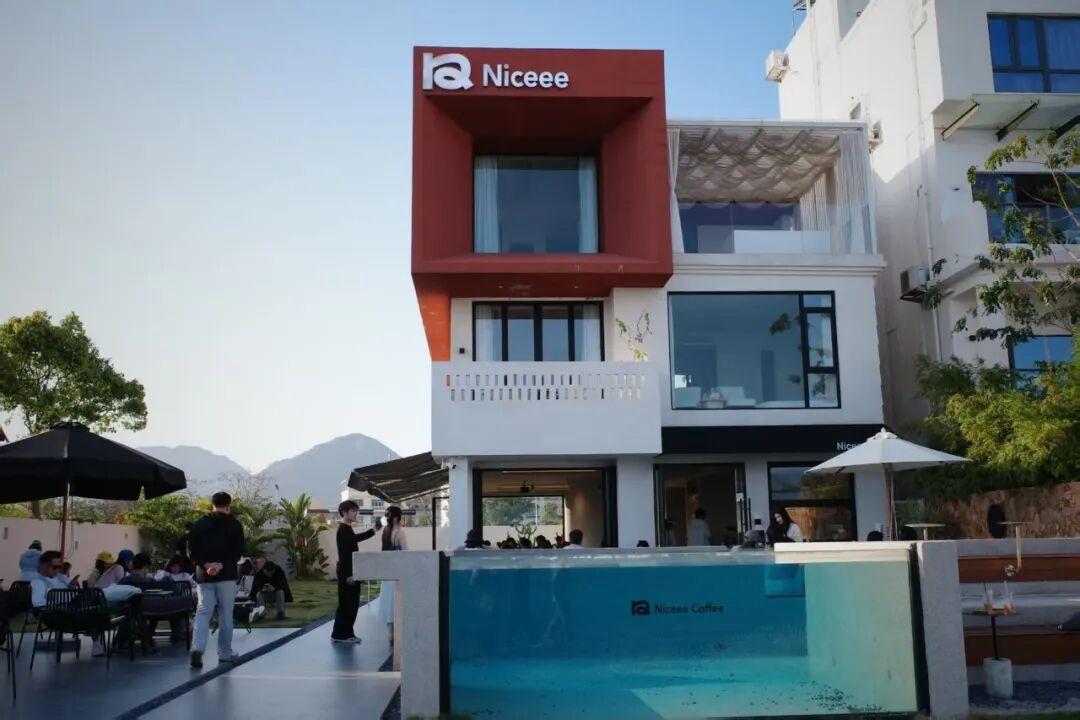 開在懸崖邊上,面朝大海。純白色的獨棟小樓,橙綠色的招牌反而不顯眼,海岸驛站四個字的出現,偶像劇氛圍瞬間拉滿。走進去之後,靠海那面還是落地窗,無敵海景直接懟到眼前!