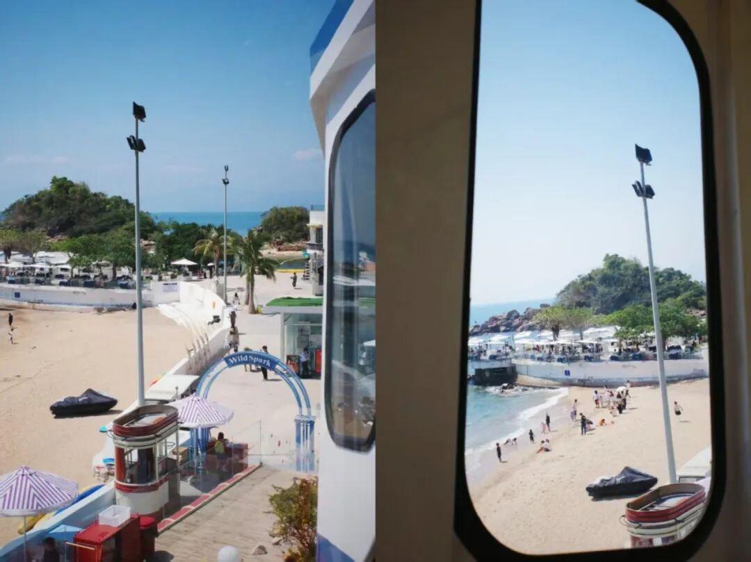 靠浪騎遊艇會那邊是桔釣沙萊華度假酒店的私人沙灘,住店的客人才能進。公共沙灘在另一頭,免費開放,人也多些。但其實公共區域的沙質和水質也不差,夠玩了。