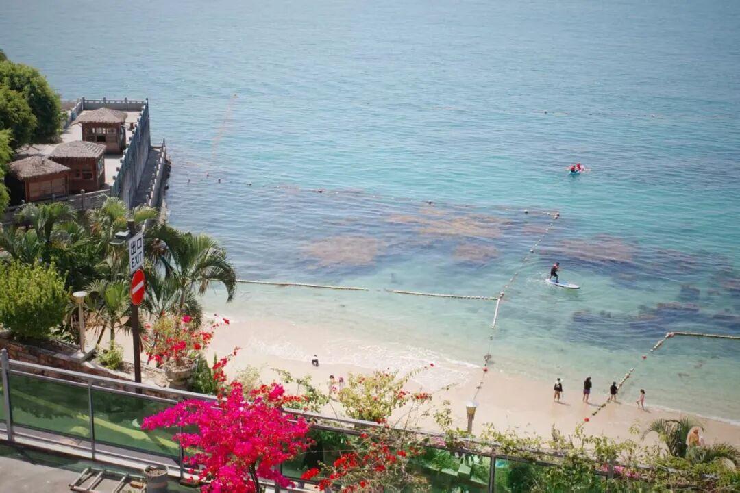 雲海天使灣在金沙灣海岸,藏在雲海山莊裏,算是一個比較小衆的沙灘。因爲要穿過山莊才能進去,所以人不算太多,更多的可能還是酒店的住客。