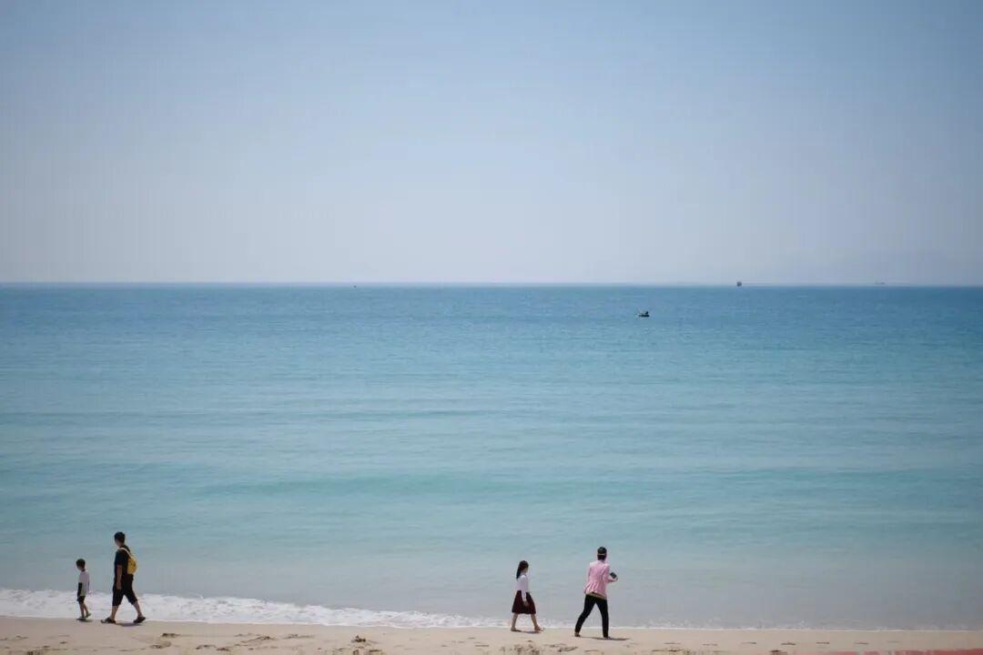 桔釣沙的沙灘是月牙形的,不算長,但沙子是真的細。海水也清,天氣好的時候能見度很高,站在岸邊就能看到底下的礁石和小魚,怪不得有人管它叫“玻璃海”。