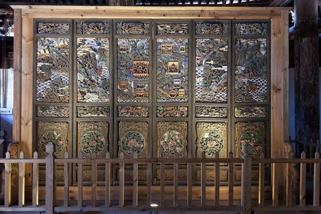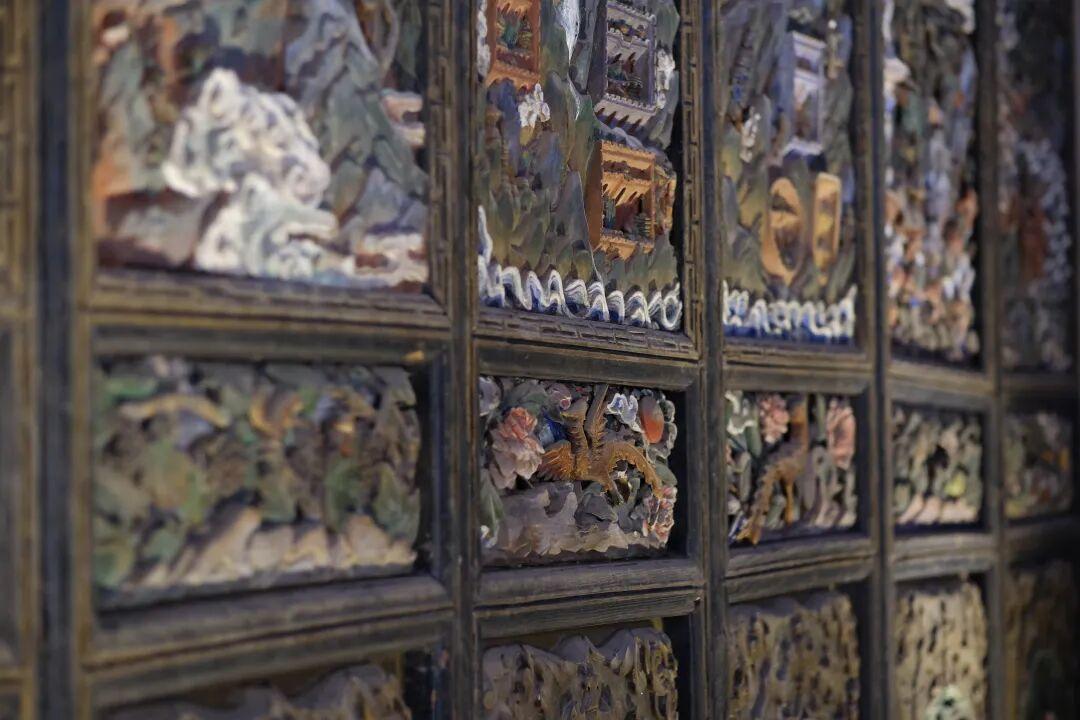 大殿內展出的明倫堂隔扇門,是六扇完整精美的明代木雕傑作。