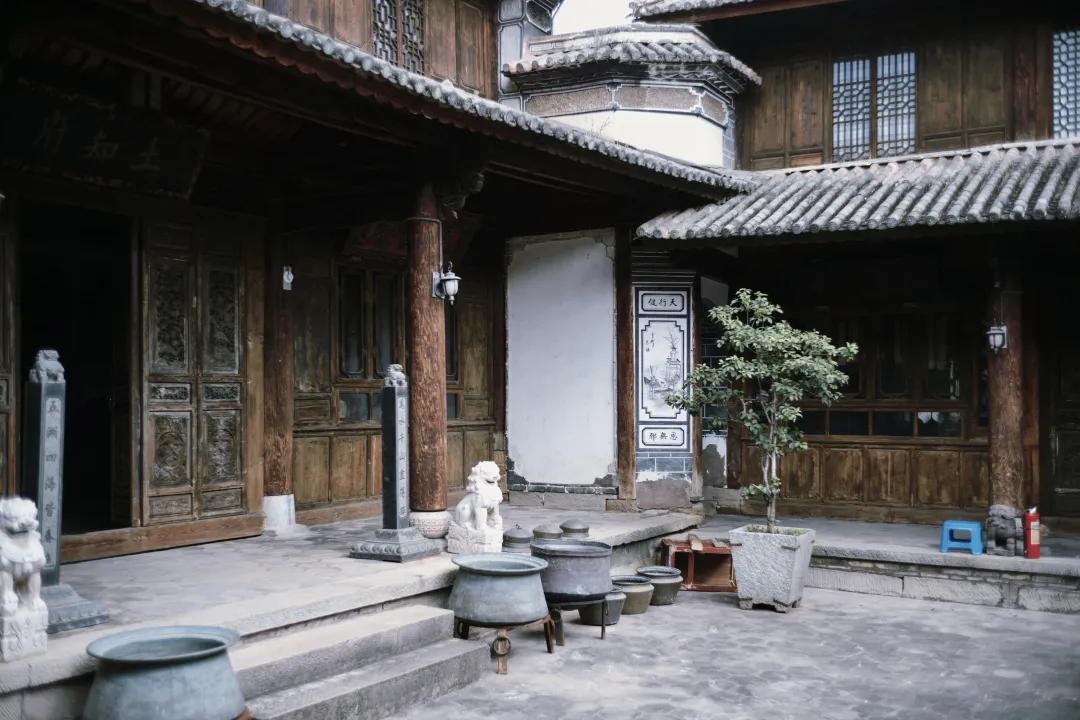 這座老宅是民國時期當地大戶的宅邸,三坊一照壁的格局,進門有天井、有花臺、有照壁,照壁上的書畫依稀可辨當年的雅趣。