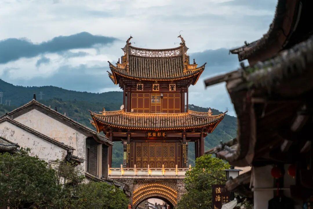 這座始建於明洪武二十二年(1389年)的城樓,是巍山古城最鮮明的標誌。它雄踞在北城牆上,面闊五間、進深三間,重檐歇山頂,飛檐翹角如大鵬展翅,遠遠望去便有壓住全城的氣度。