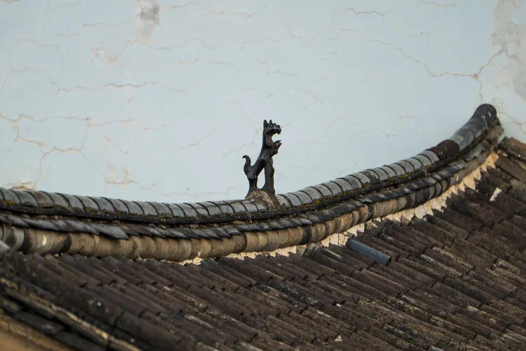 它造型誇張,大嘴怒張、獠牙森然,眼睛圓睜,頭頂還帶個「王」字——乍看像貓,實則是「寓虎於貓」,因此瓦貓又有「鎮脊虎」「降脊虎」「吉祥虎」等別名。