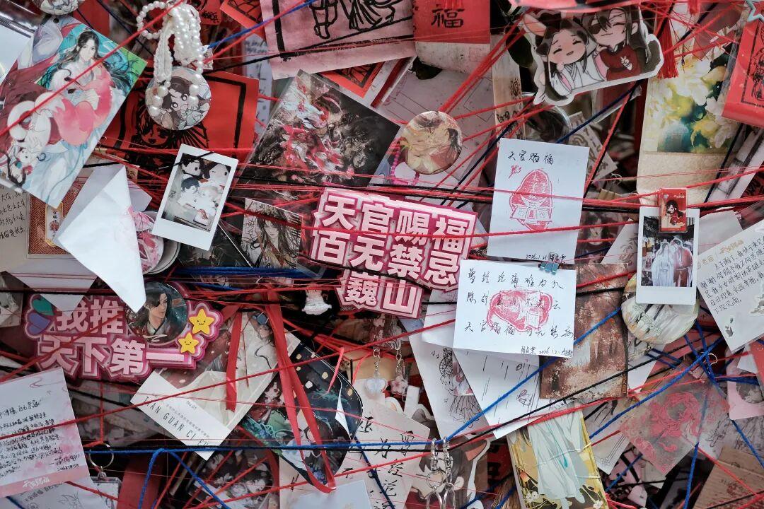 道友們也是非常包容,不僅沒有禁止年輕人的打卡,還給出了足夠的空間,到處都貼滿了小卡。「天官賜福,百無禁忌」這句話,如今也成了太子殿的標誌性符號。