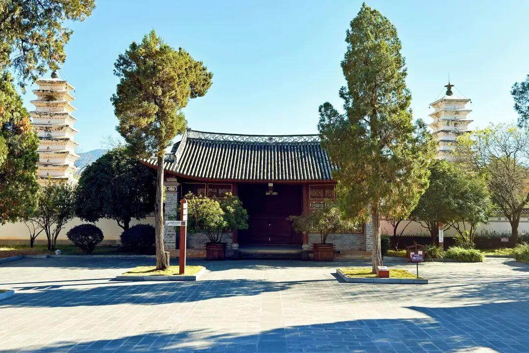 雙塔建於明成化元年(1465年),由蒙化土知府左琳出資建造,爲九級方形密檐式實心磚塔。塔身刻有梵文,塔頂以紫銅寶頂爲剎,上系二十四個風鈴,象徵二十四節氣。風吹過時,鈴聲清越,遠遠都能聽見。