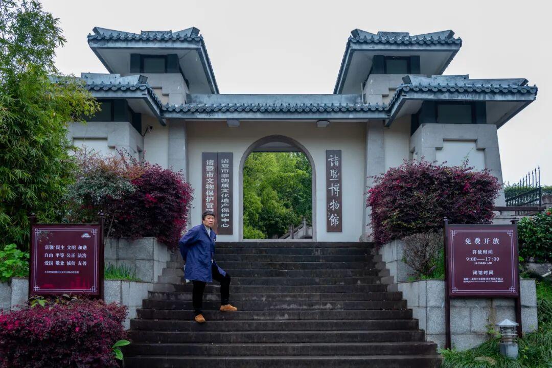 諸暨博物館依山而建,地勢高,能看見一部分諸暨城區。環繞博物館的樹木鬱鬱蔥蔥,目之所及都是綠色。