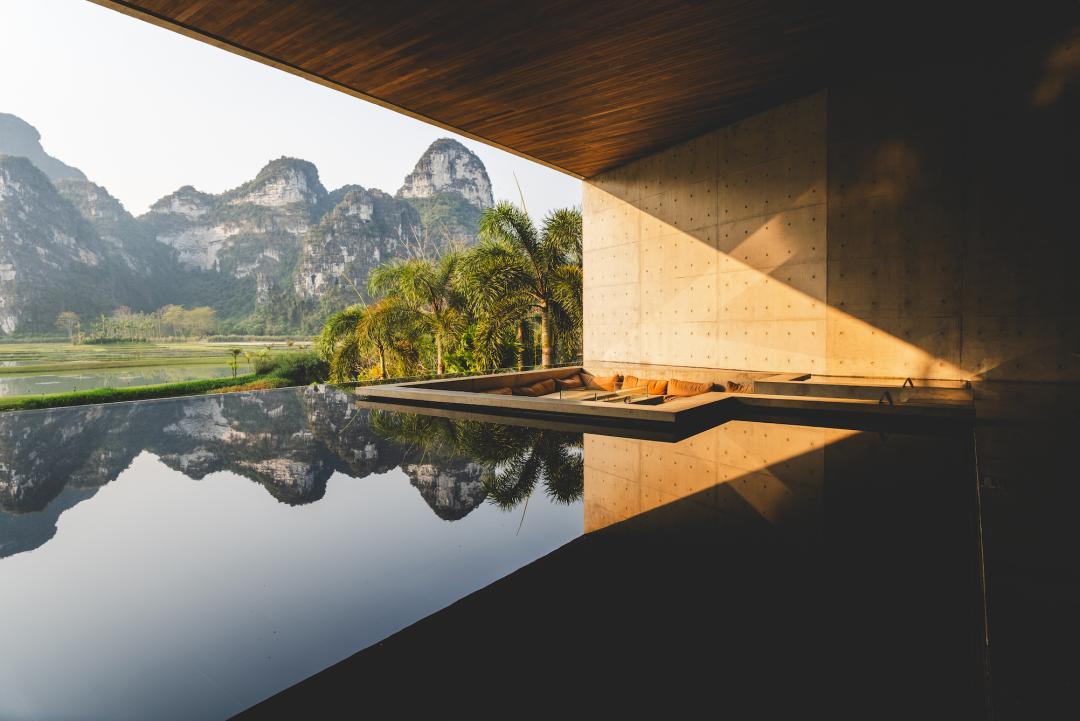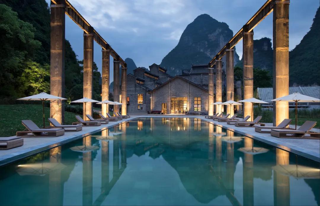 酒店前身是60年代灕江邊的一個糖廠,爲了保護灕江生態而被關停。幸運的是,當她重新迴歸時,變成了一家設計師酒店。