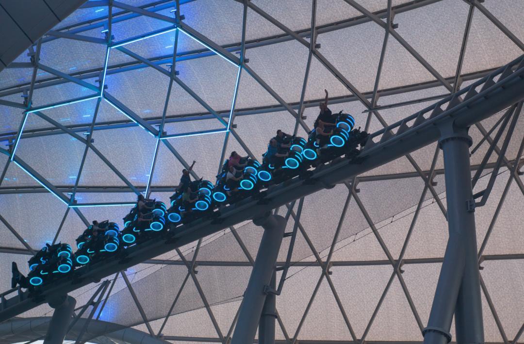 2023年新開的過山車,是上海迪士尼同款的摩托式過山車,配有酷炫的藍光特效,驚險刺激度滿分。