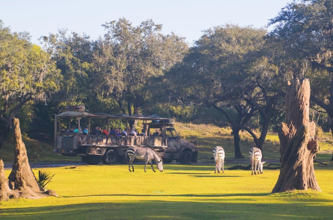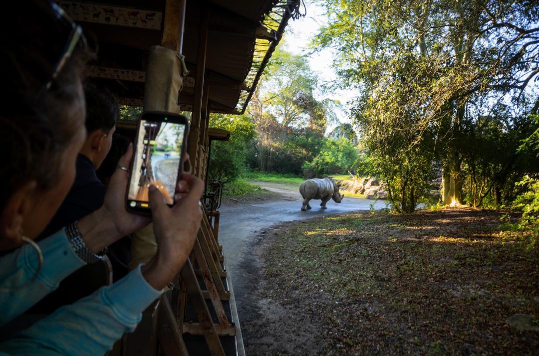 非洲區的乞力馬紮羅草原歷險(Kilimanjaro Safaris)必衝,乘坐敞篷車穿越110英畝非洲草原,近距離觀察獅子、長頸鹿等幾十種動植物。