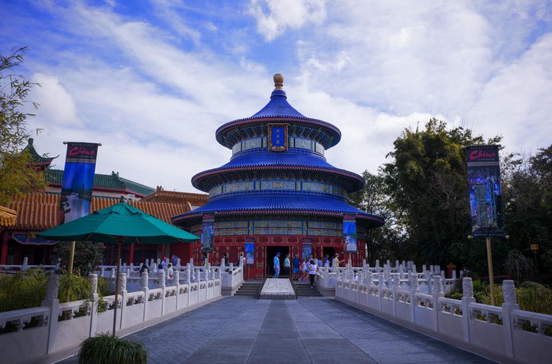 EPCOT的另外一個特色是迪士尼版的全球文化之窗,有11個各國的特色館,幾乎全是世界各地的經典地標建築,如北京天壇祈年殿、墨西哥阿茲特克金字塔、巴黎埃菲爾鐵塔呢。