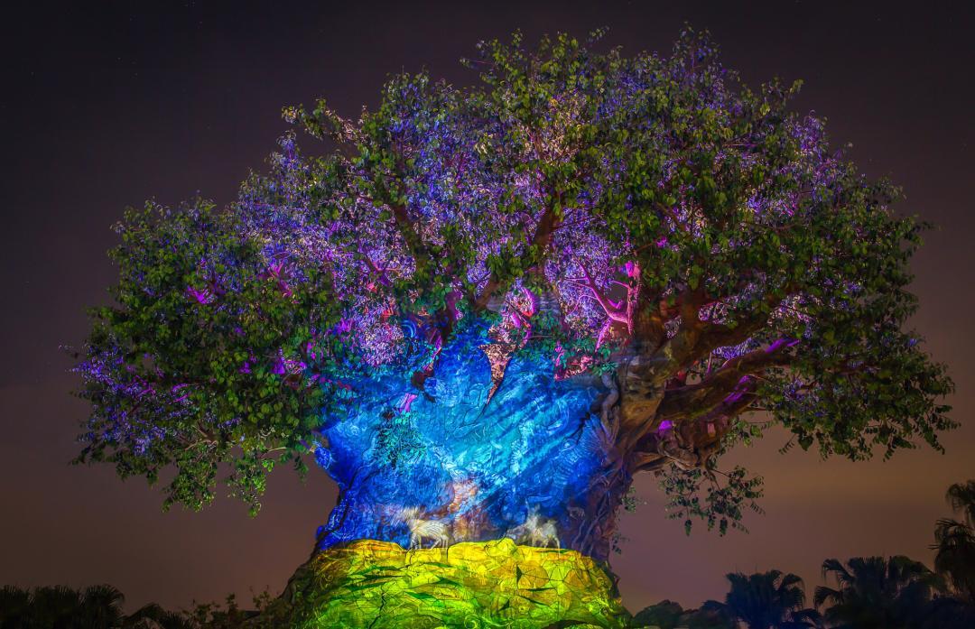 動物王國晚上沒有煙花秀,但生命之樹在晚上會有光影秀。