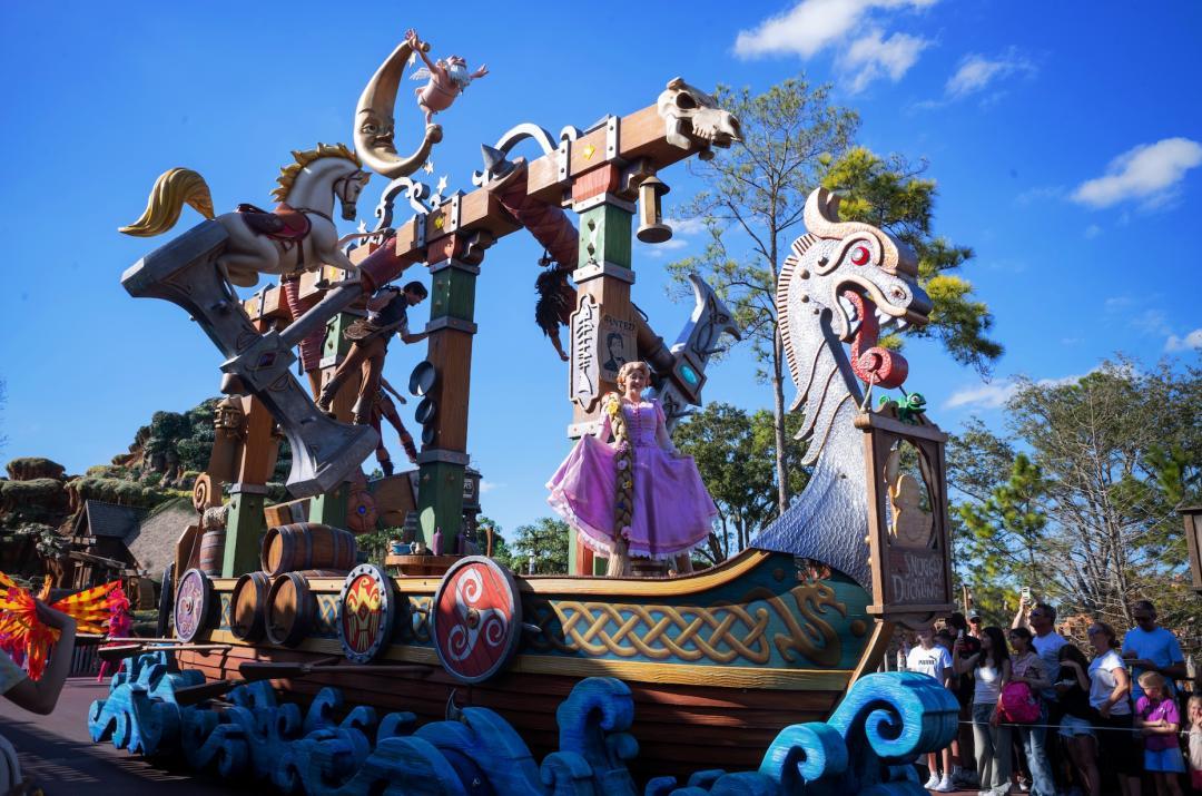 如果你帶着小孩來,這裏是他們的主場,每個轉角都有人物見面會,每天下午有花車巡遊,晚上有煙花,是那種看完會覺得人生值了的煙花。
