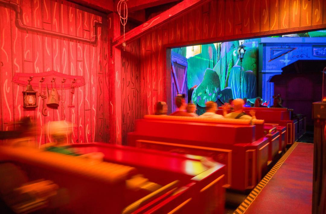 迪士尼的招牌鬼屋,乘坐慢速列車穿越15個主題房間,但真的一點都不嚇人。