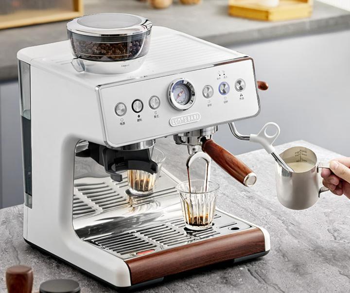 露茉在咖啡圈口碑很穩,對比同價位研磨一體機,這款Pro版性價比很高。顏值很在線,純白啞光機身搭配金屬邊框,再加胡桃木色手柄與蒸汽撥杆,復古高級感拉滿,放在咖啡角特別耐看。