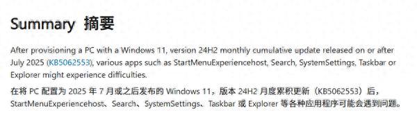 微軟解釋道,此問題與系統中的XAML組件有關,主要發生在管理員配置PC,並在設備上應用了2025年7月或之後發佈的KB5062553之後。
