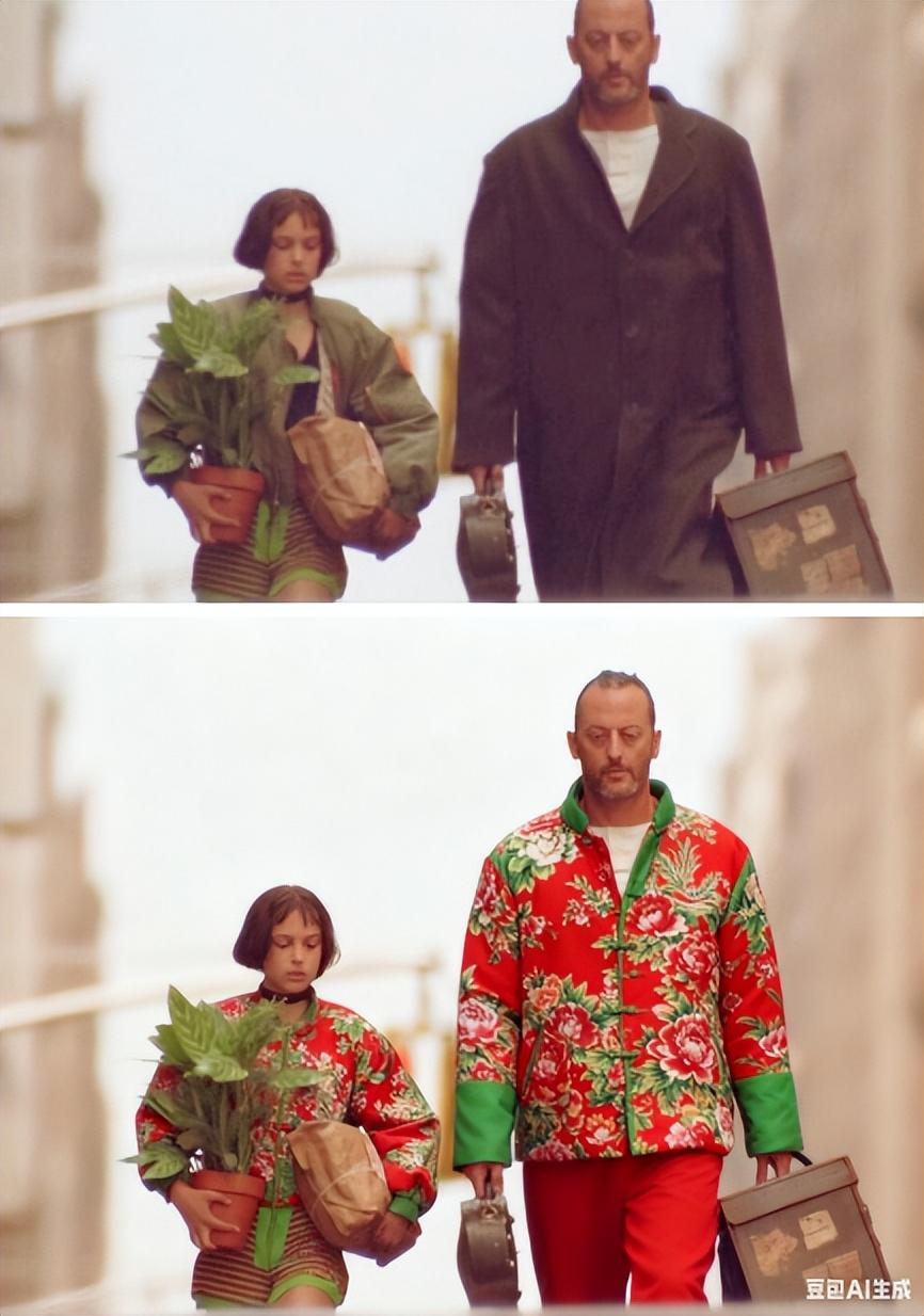 當這個狠角手捧通常只在喜慶場合出現的椰汁,其中所形成的巨大反差自然讓觀感十分微妙,就像《哈利·波特》的伏地魔口唸“阿彌陀佛”和大悲咒,《這個殺手不太冷》的萊昂裹上東北雨姐的大花襖。